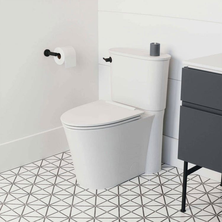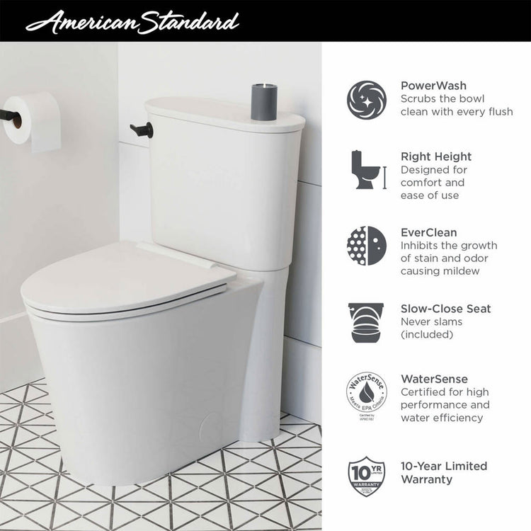 The Studio S Right Height Skirted Toilet from American Standard is a minimalist design that complements the contemporary aesthetic of the Studio S Collection. Smooth-sided, concealed trapway enhances the look and makes cleaning easier by eliminating the hard-to-reach curves and crevices where dirt hides. For superior cleanliness, the Studio S toilet features a PowerWash rim that releases a surge of water to scrub the bowl with every flush. EverClean coating inhibits the growth of stain- and odor-causing bacteria, mold and mildew.