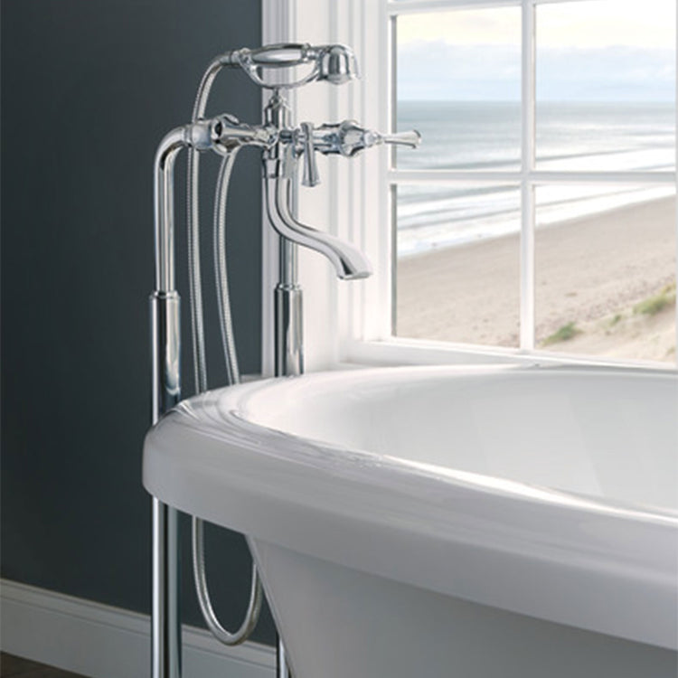 Drawing inspiration from the timeless beauty of lighthouses, the Baliza® Bath Collection features a unique architecture and simple, elegant lines. The two-handle freestanding tub filler can be configured for wall mount, deck mount or floor mount installations. For floor mount installations only, a rough (sold separately) is required.