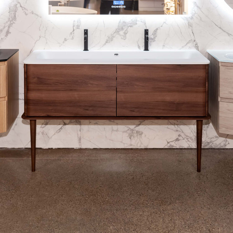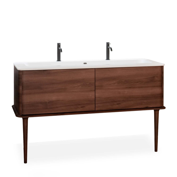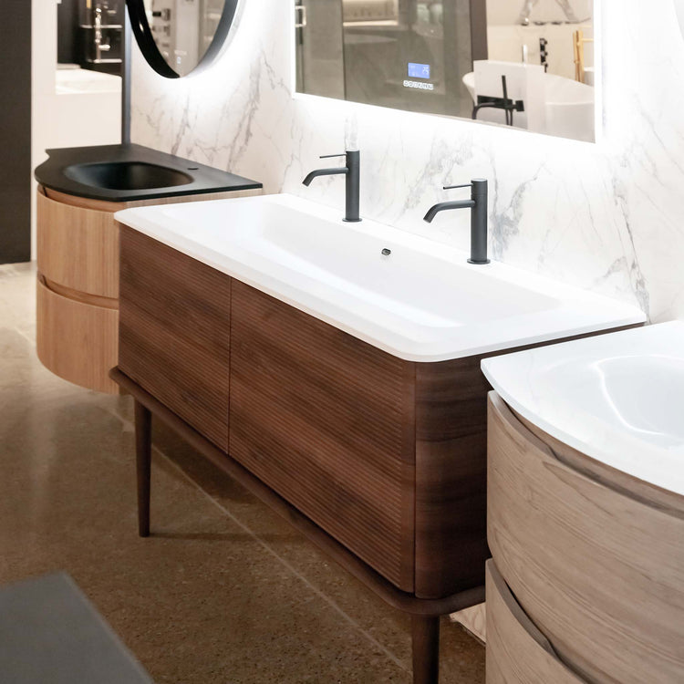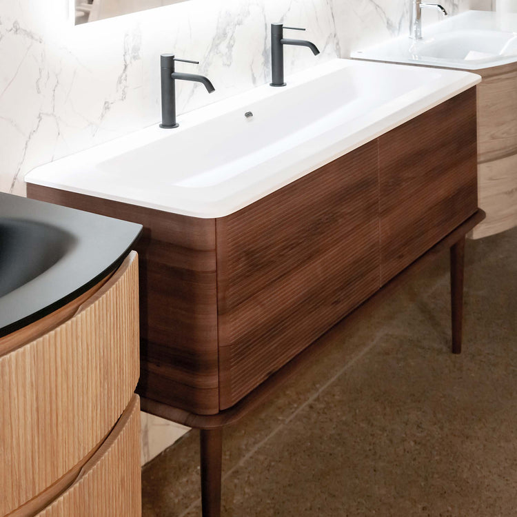The Idra Collection was born from the concept of a bathroom environment in which the typical elegance of classic design is reinterpreted in a modern key with elements of strong stylistic connotation capable of giving a new light to the panorama of bathroom furnishings. Timeless elegance and contemporary rigor come together in a game of contrasts between curved lines and 3D geometries for a versatile and refined Collection. Available in the hanging version or with solid wood feet, the Collection has sides with finely rounded edges that welcome fronts with horizontal fluted decoration in a vast range of nuances and sizes.