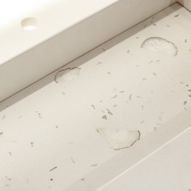 The FLO vanity is composed of a sloped sink for a unique linear look. This concept is ideal for oversized vanities or with a double sink option and is also our most popular model for commercial projects.