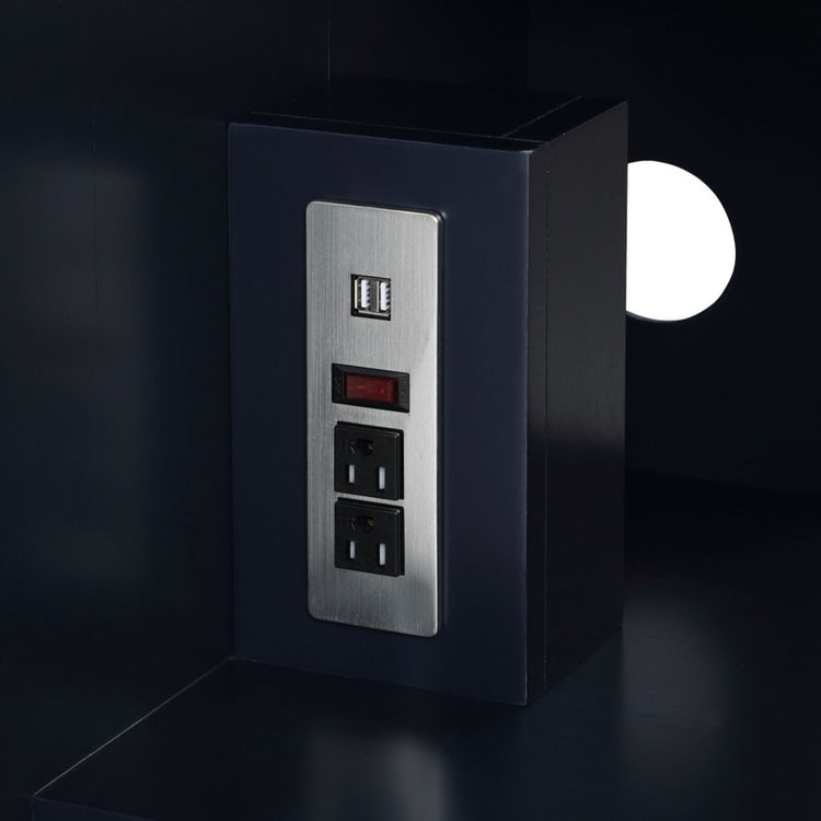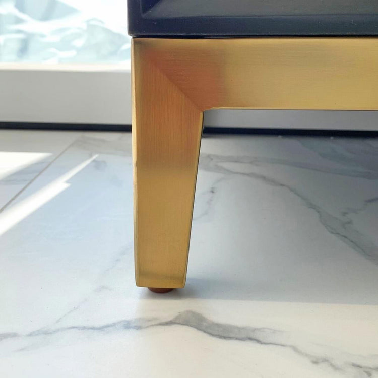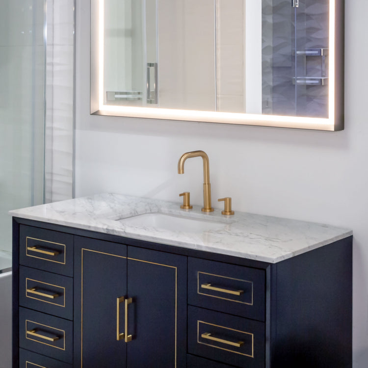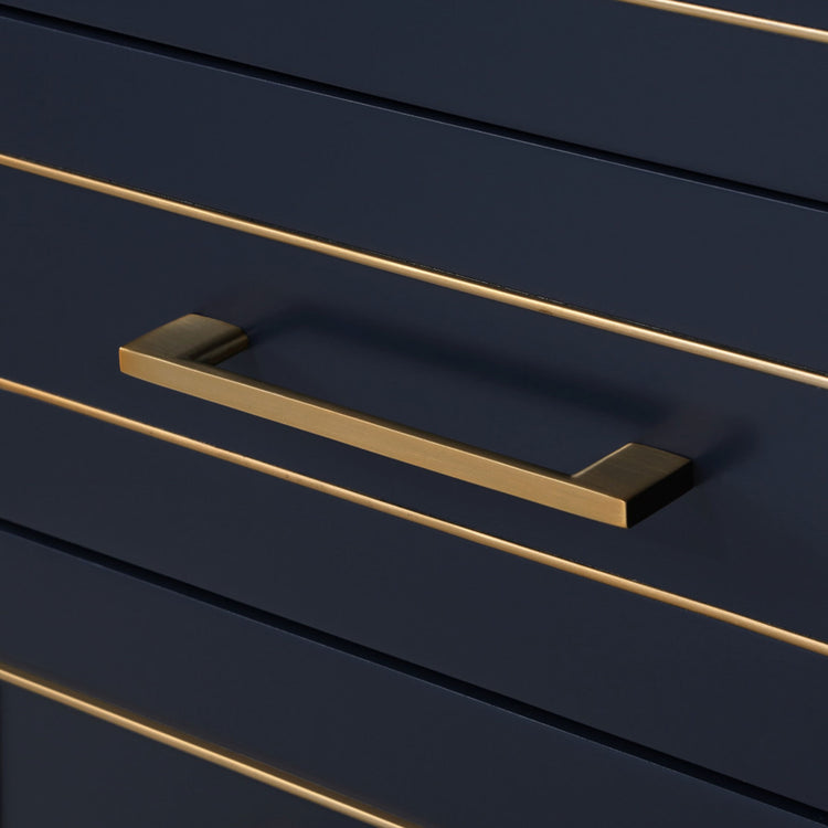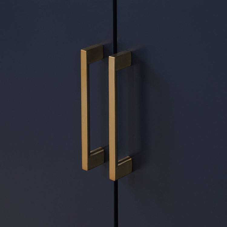 Inlaid satin brass and matching door pulls combined with Sherwin Williams soft-touch lacquer finishes in Midnight Black, Pacific Blue or Satin White to radiate understated glamour.