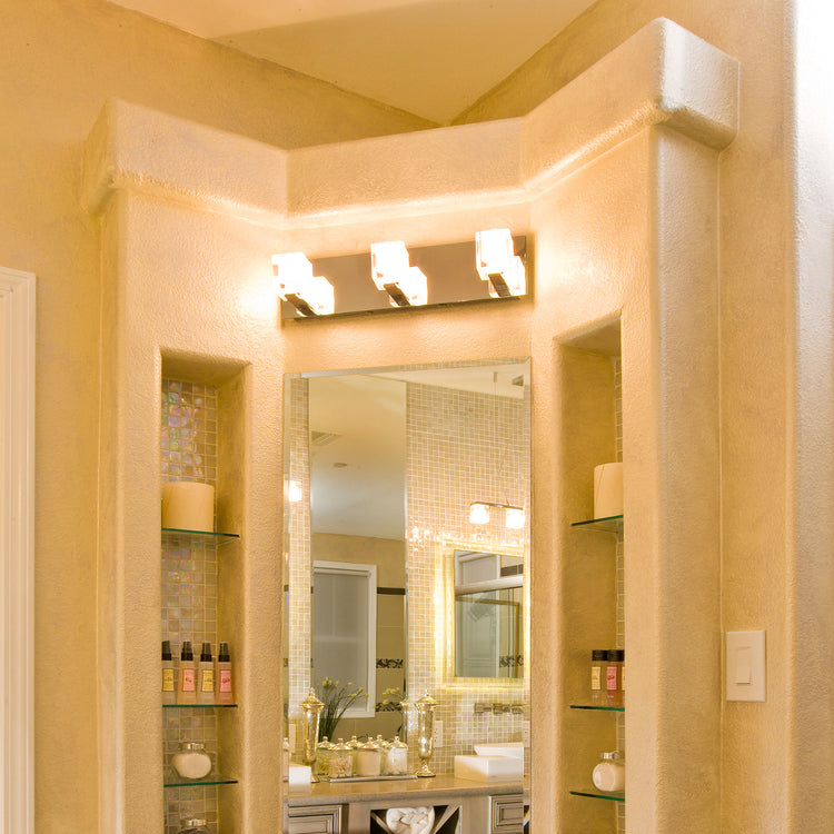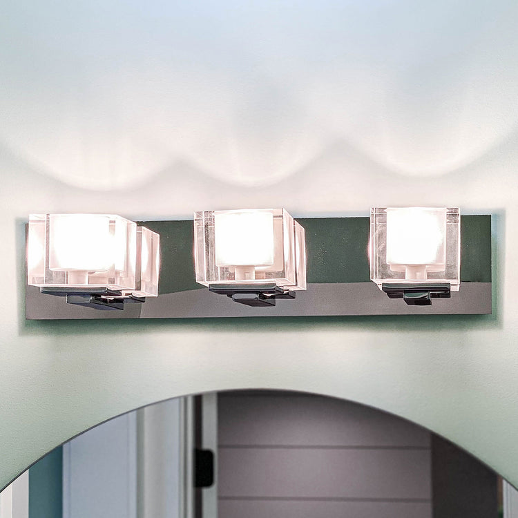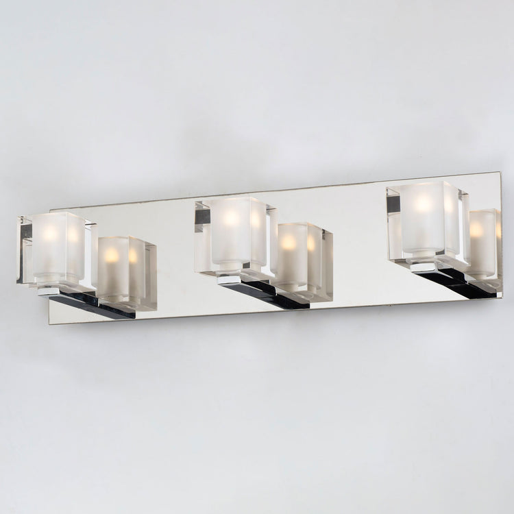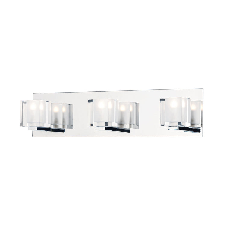 The building blocks of style. This collection comes in a wide variety of applications for the most innovative illumination solutions. The lamp configurations boast thick, Clear/Frosted square glasses encasing G9 LED bulbs. Light blocks are anchored to a highly reflective Polished Chrome frame that reflects their simple elegance.