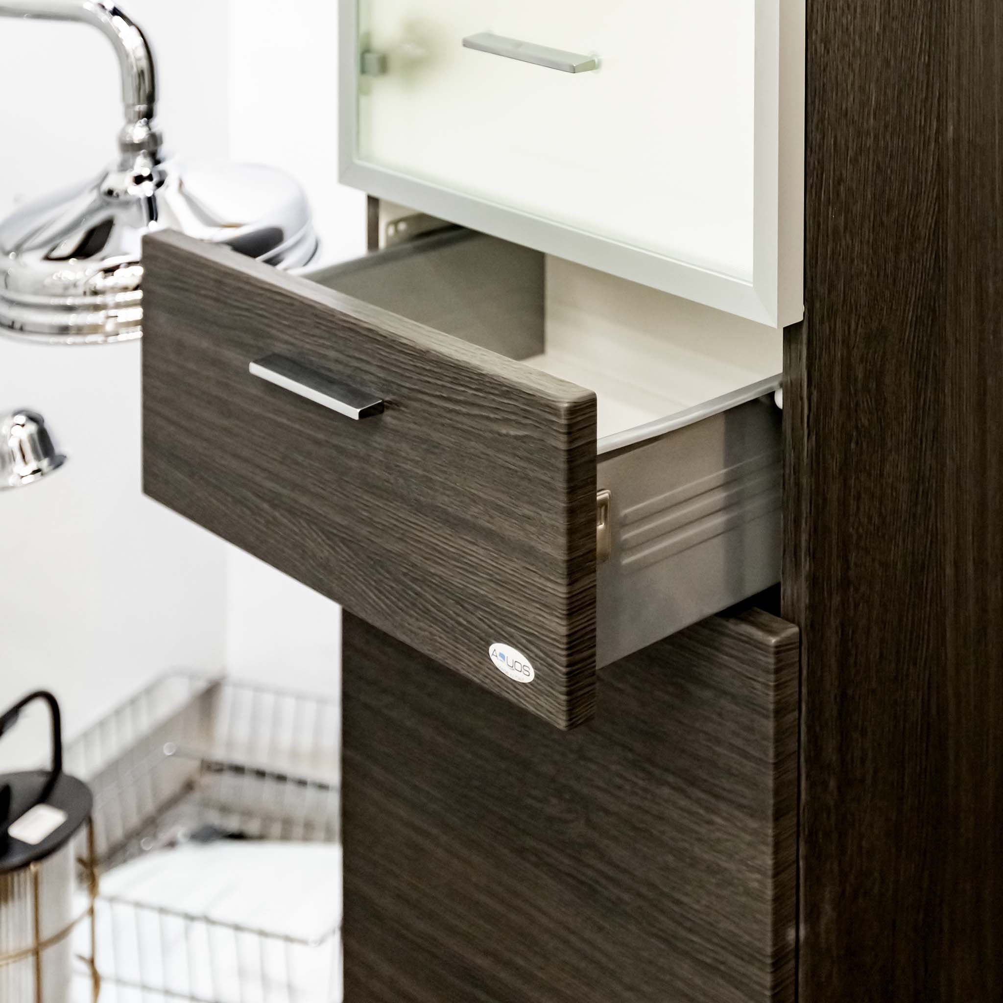 The beauty of the fronts with raised texture distinguishes LAMÈ collection. Six different geometrical patterns available in a wide variety of finishes. Details chrome and gold define the volumes of this new concept.