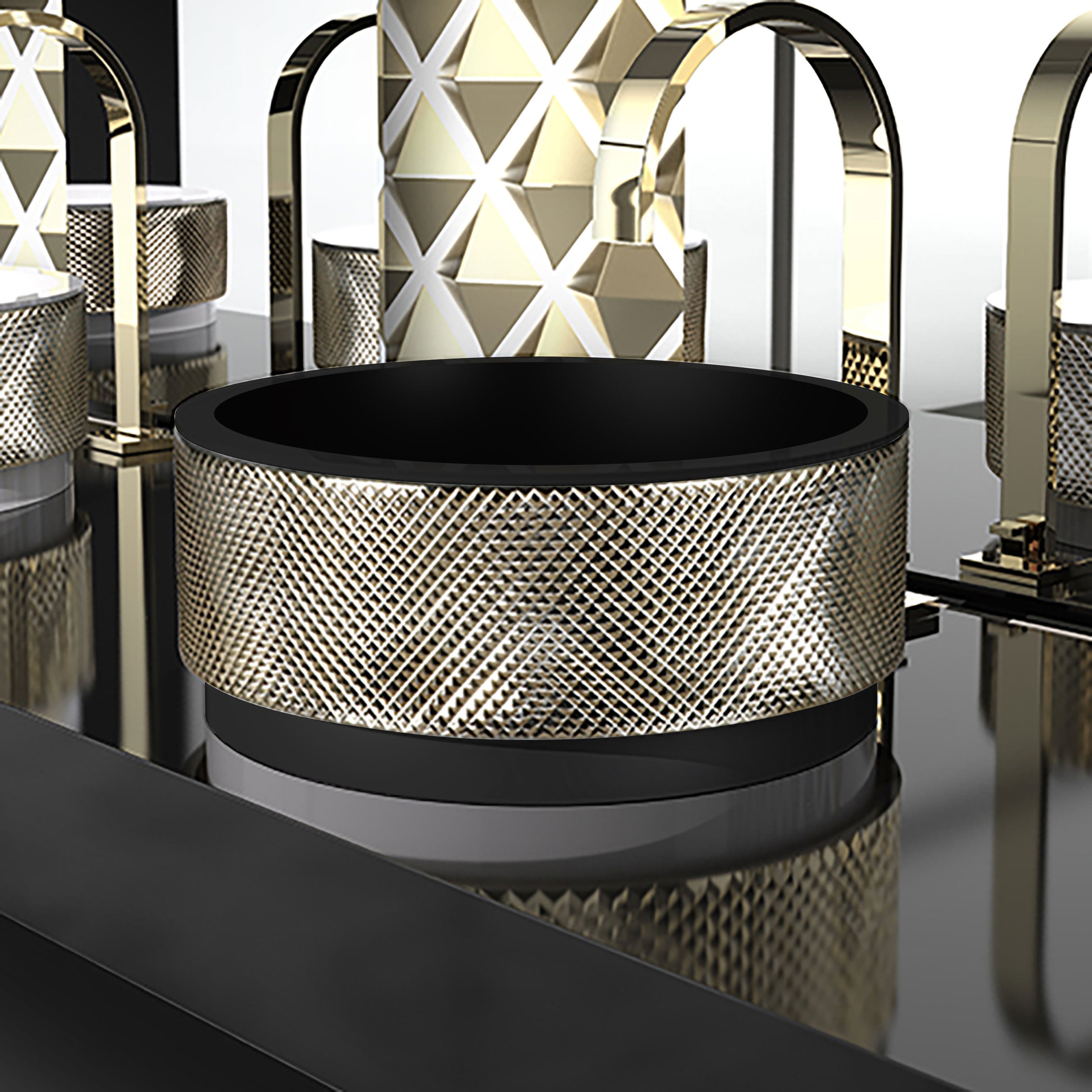 LUXOR OVAL countertop washbasin in the purest clear crystal 24% pb, hand beveled in stone. An exclusive diamond cut, classic geometries repeat, leading to a magnificence display of light architecture.
