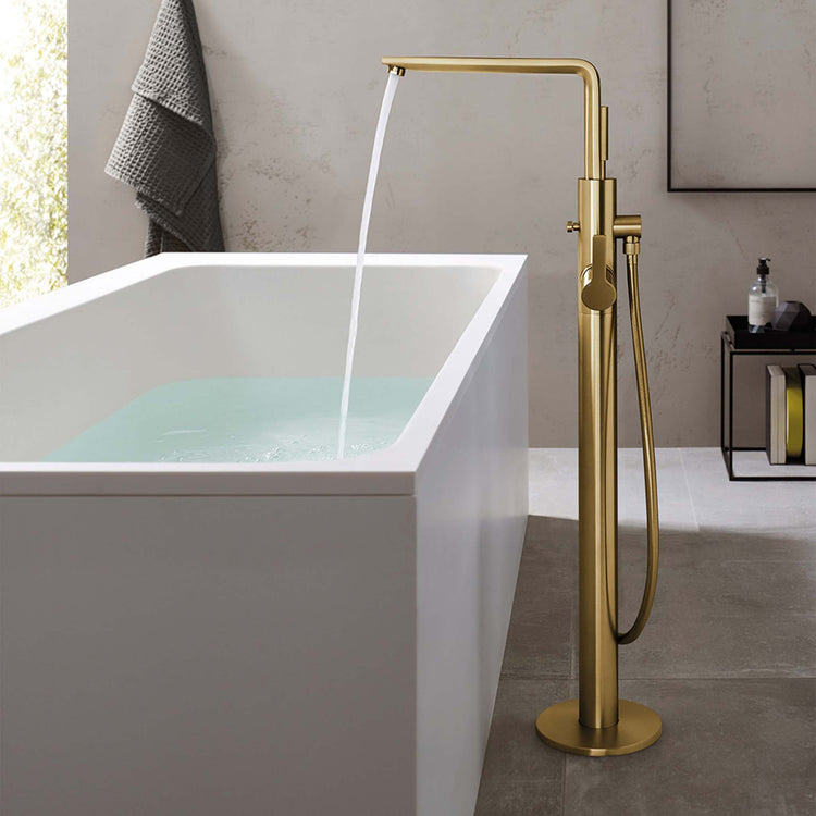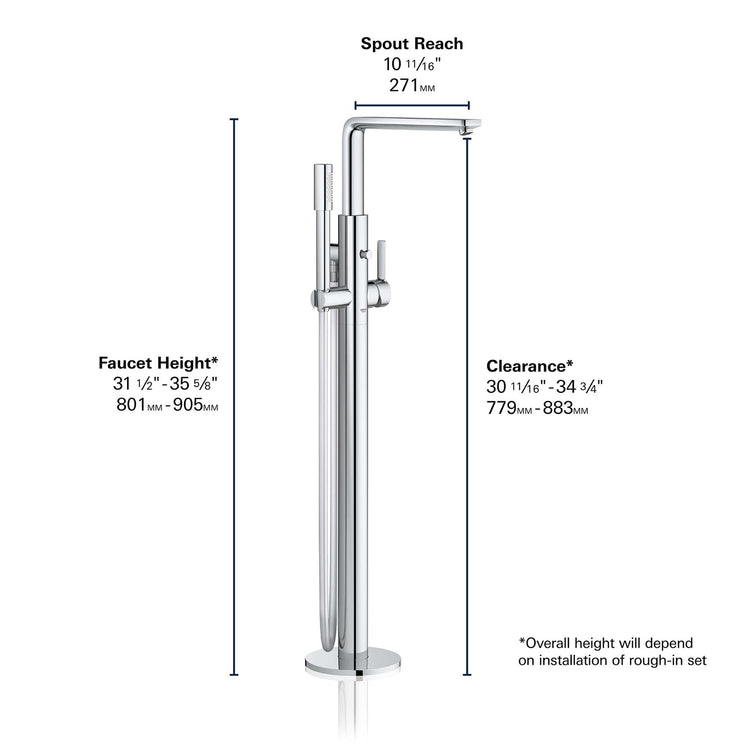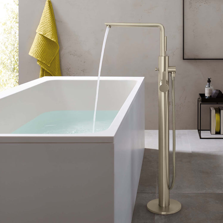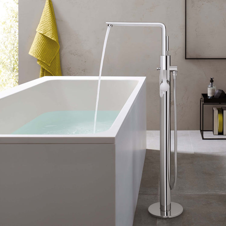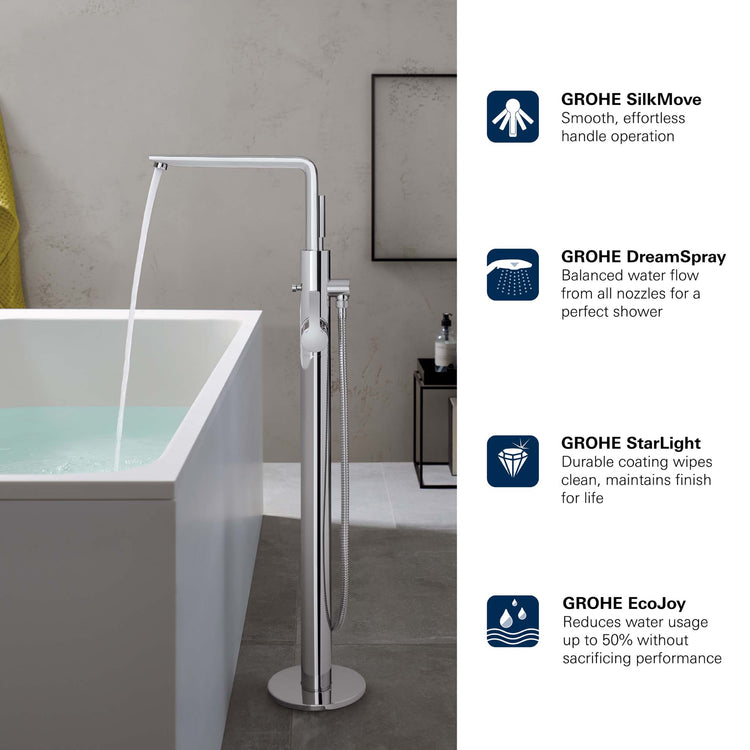The GROHE Lineare Floor-Standing Tub Filler is engineered with the precision and craftsmanship that have made GROHE the choice for discerning homeowners. Clean, unpretentious and designed for superior performance, this tub filler includes the Sena Stick Hand Shower with GROHE DreamSpray® that dispenses water evenly for a more enjoyable experience. Equipped with a built-in diverter, making it easy to switch water flow from tub filler to hand shower. GROHE SilkMove® ensures handle operation is always smooth and precise.