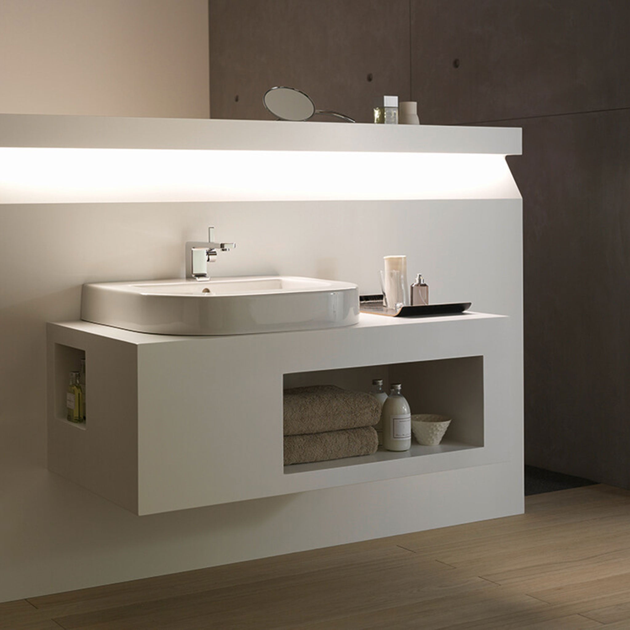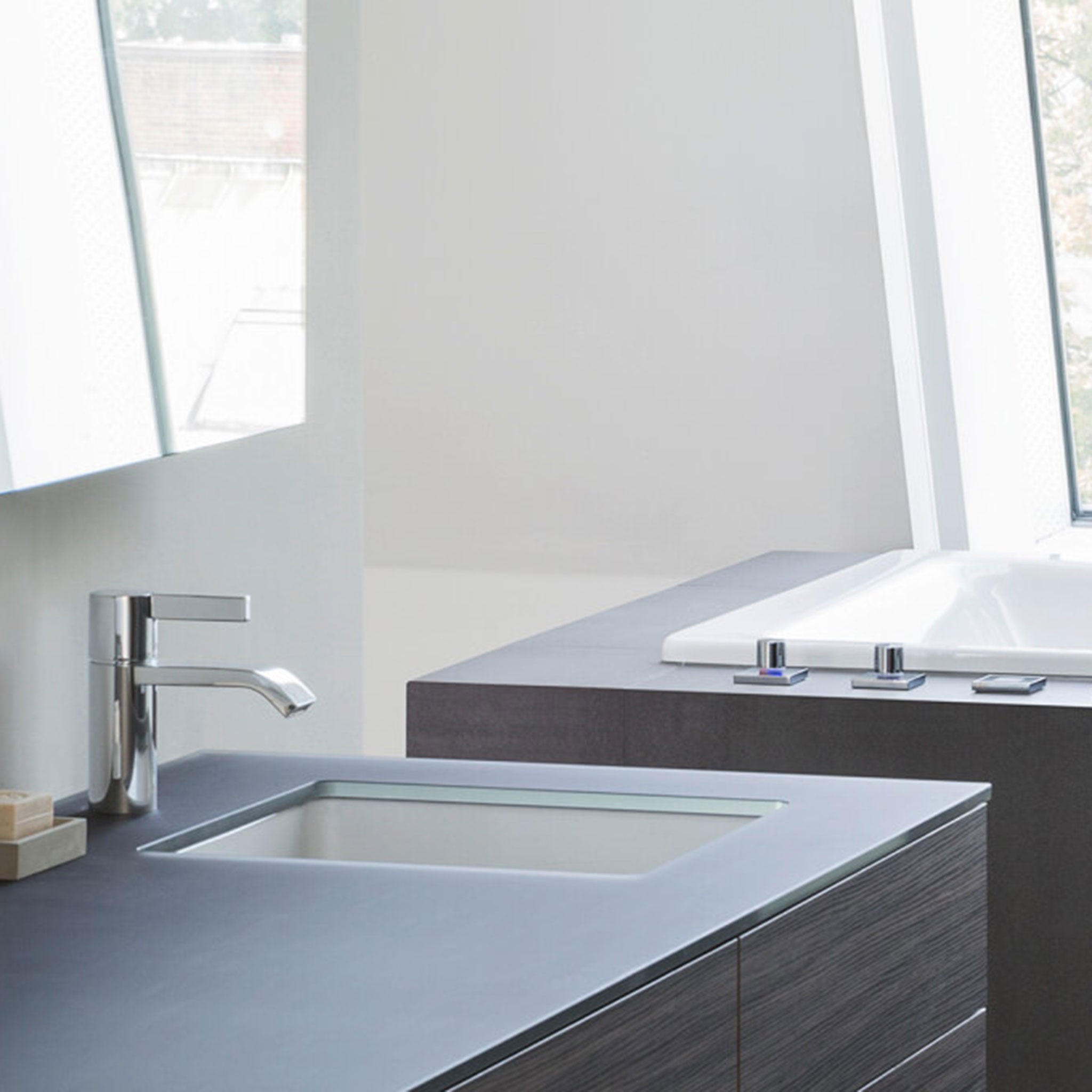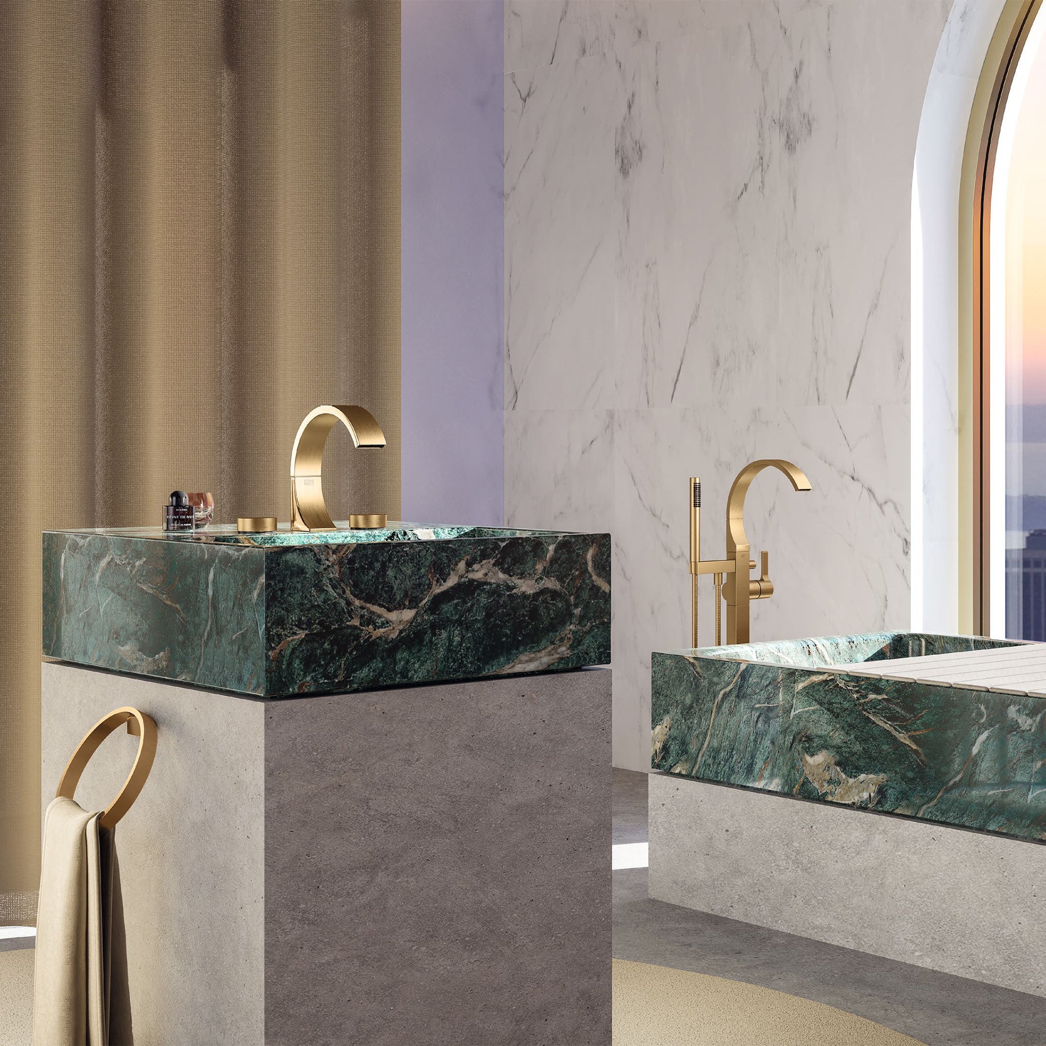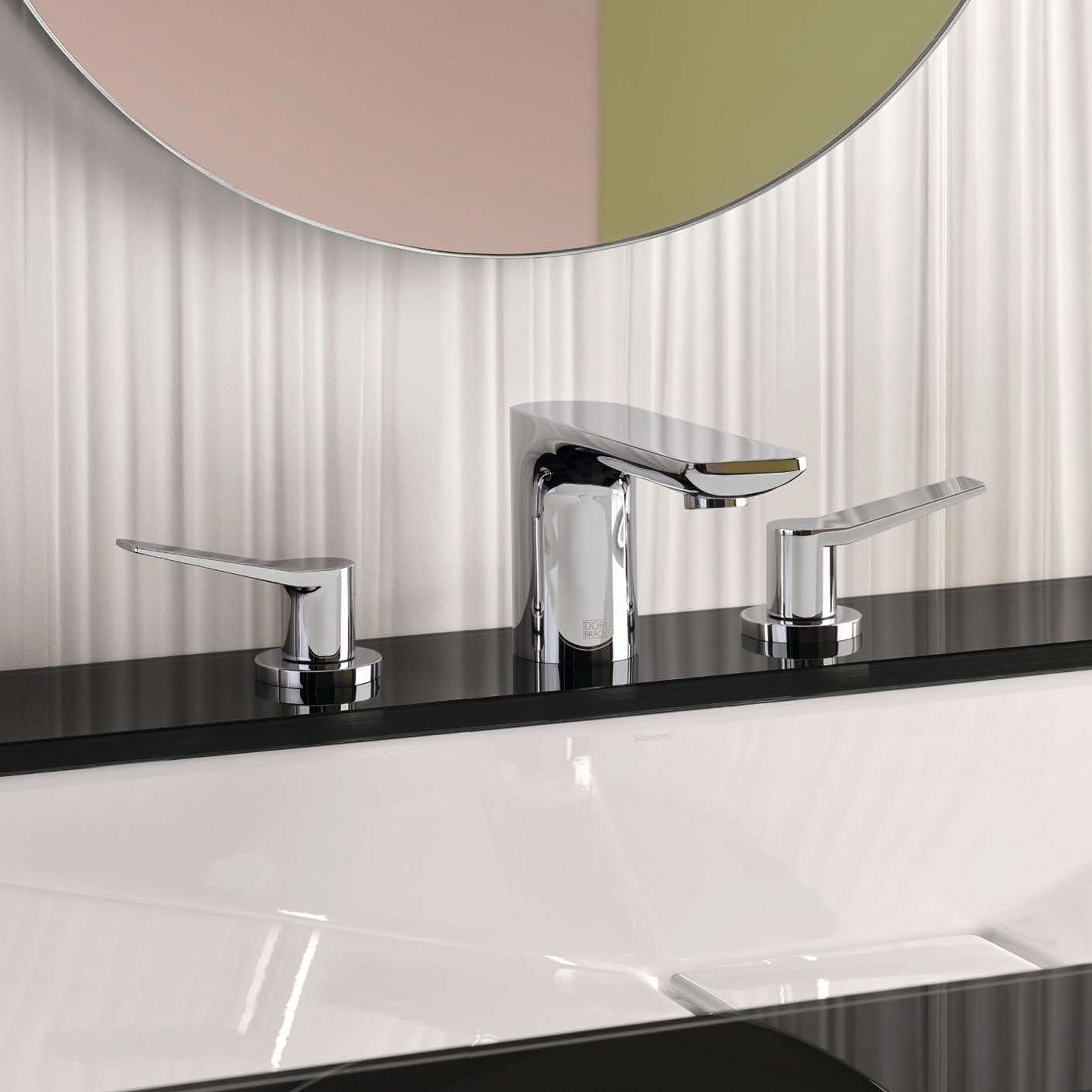 The Classical Lever Faucet Set establishes the stylistic direction for the bath. This classic and versatile faucet set is available in various metal finishes.