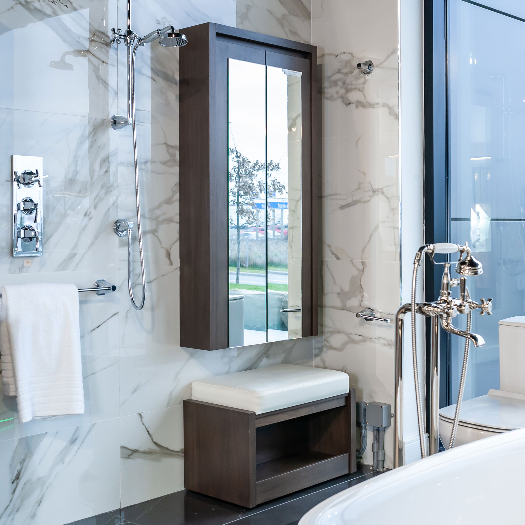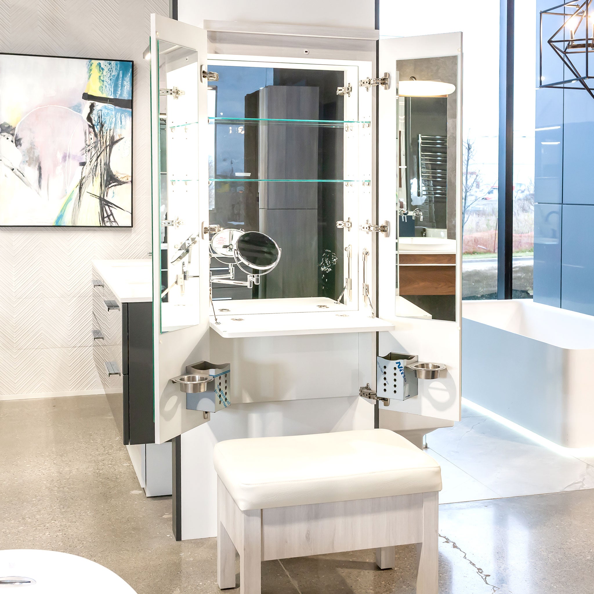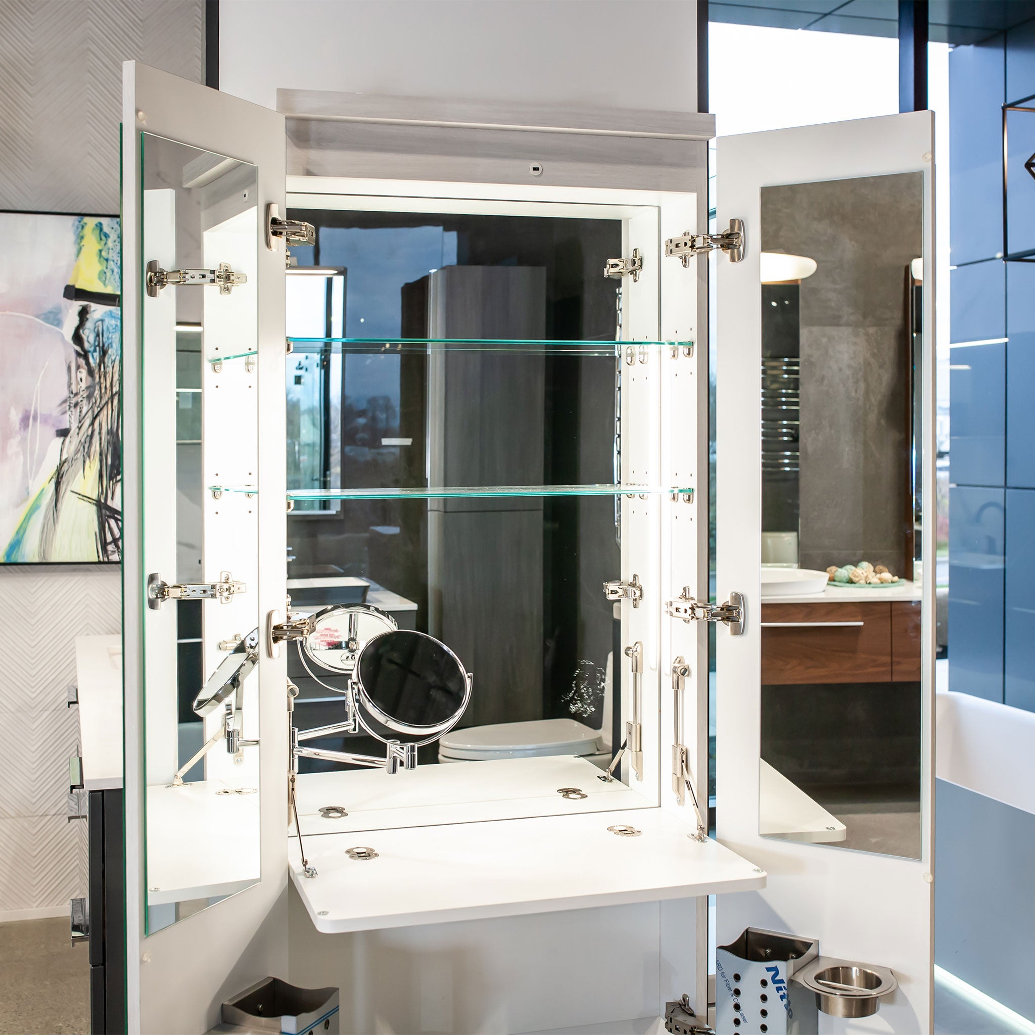 Mini Studio Mirror 30" & Wall Hung Linen 15" Iceberg chrome handles